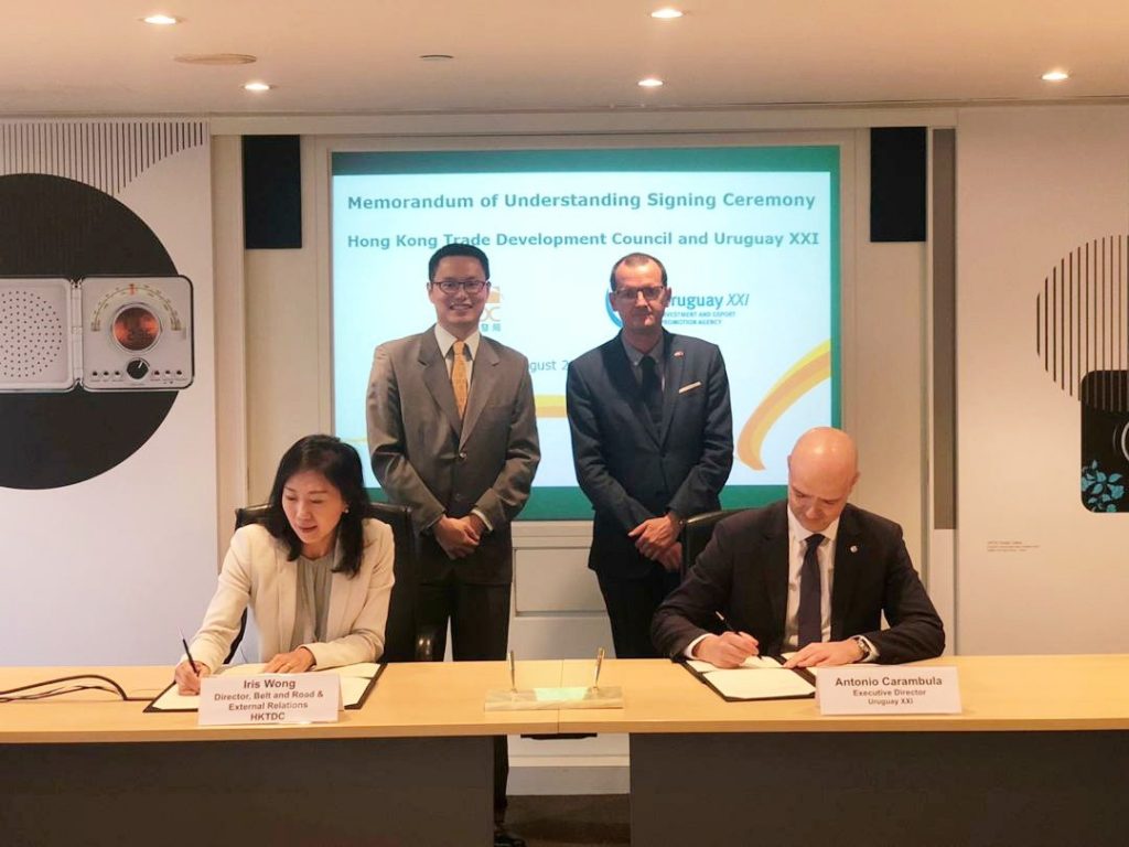 En la tarde del viernes 23 de agosto, se realizó una Audiencia con Hong Kong Trade Development Council (HKTDC). En la misma tuvo lugar la Ceremonia de firma de acuerdo entre Uruguay XXI y HKTDC con presencia del señor Ministro Dr. Ing. Guillermo Moncecchi. También estuvieron por HKTDC: Director Ejecutivo Adjunto Sr. Patrick Lau, Directora de Una Franja Una Ruta Sra. Iris Wong y la delegación uruguaya.