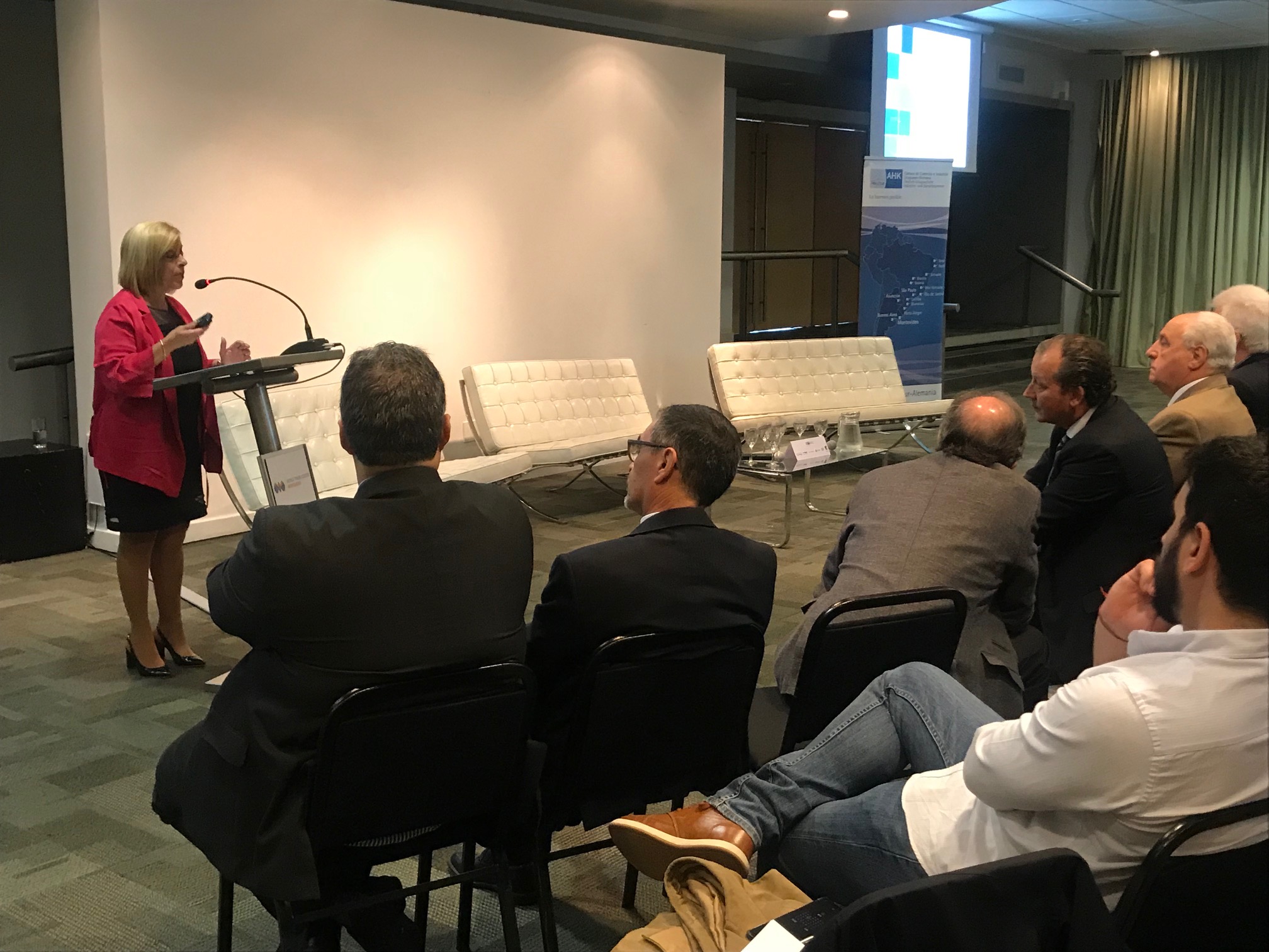 También contaron con la presencia de la Presidente de INALOG, Cra. Ana Rey, quien explicó al auditorio las bondades de nuestro país y el hecho de que Uruguay pueda ser un país de tránsito. Comentó el régimen de promoción de inversiones y el de zonas francas para los alemanes que desconocen sobre sus beneficios. Por último, destacó las ventajas de contar con un centro de distribución regional y darle valor agregado a la mercadería.