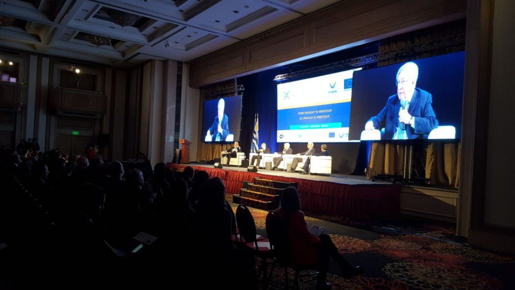 Le siguió la conferencia sobre el tema «Perspectiva del sector empresarial europeo en el Mercosur», con Raúl Richero (Team Leader de Eurosupport), Gustavo Weigel (Eurocámara Uruguay) y Federico Kade (Eurocámara Argentina). Oficiando de moderadora Andrea Nicolaj (Delegación de la Unión Europea en Uruguay).
