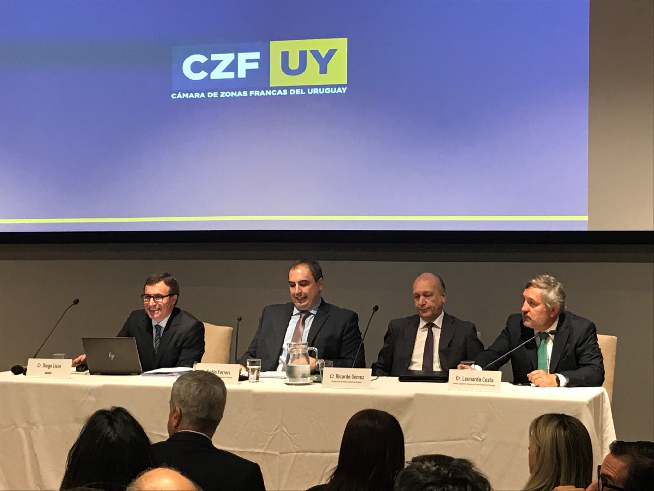 El evento contó con la presencia del Cr. Diego Licio (Presidente entrante de la CZFUY), el Cr. Pablo Ferreri, Subsecretario del Ministerio de Economía y Finanzas (MEF), el Cr. Ricardo Gómez, Director del Área Zonas Francas (AZF), y el Dr. Leonardo Costa, Asesor Legal de la CZFUY. Todos ellos expusieron sobre los nuevos desafíos de la norma, ante la necesidad de alinear lo incentivos tributarios a los estándares internacionales de lineamientos y exigencias en materia de fiscalidad internacional.