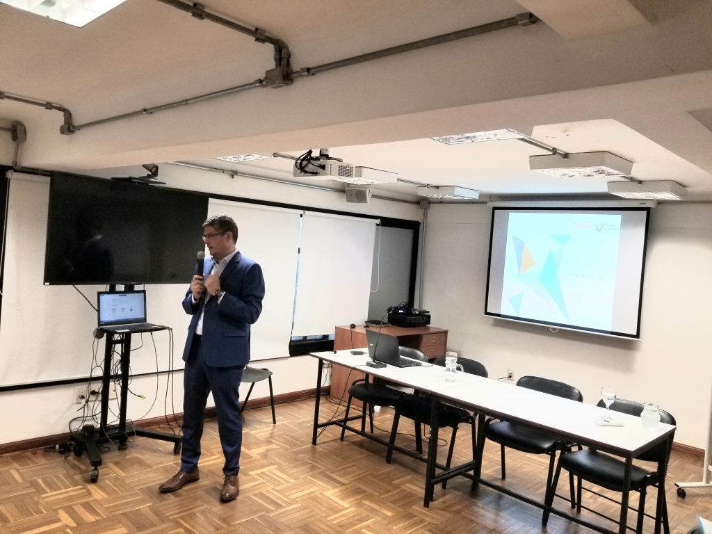 En la última charla, el viernes 25 de octubre se comenzó presentando las ventajas que surgen de utilizar las plataformas logísticas uruguayas como centro de distribución regional. Se presentaron también tres modelos de negocios del hub, que van desde una operativa solo de trasiego hasta una operativa con customización del producto y servicios de valor agregado.