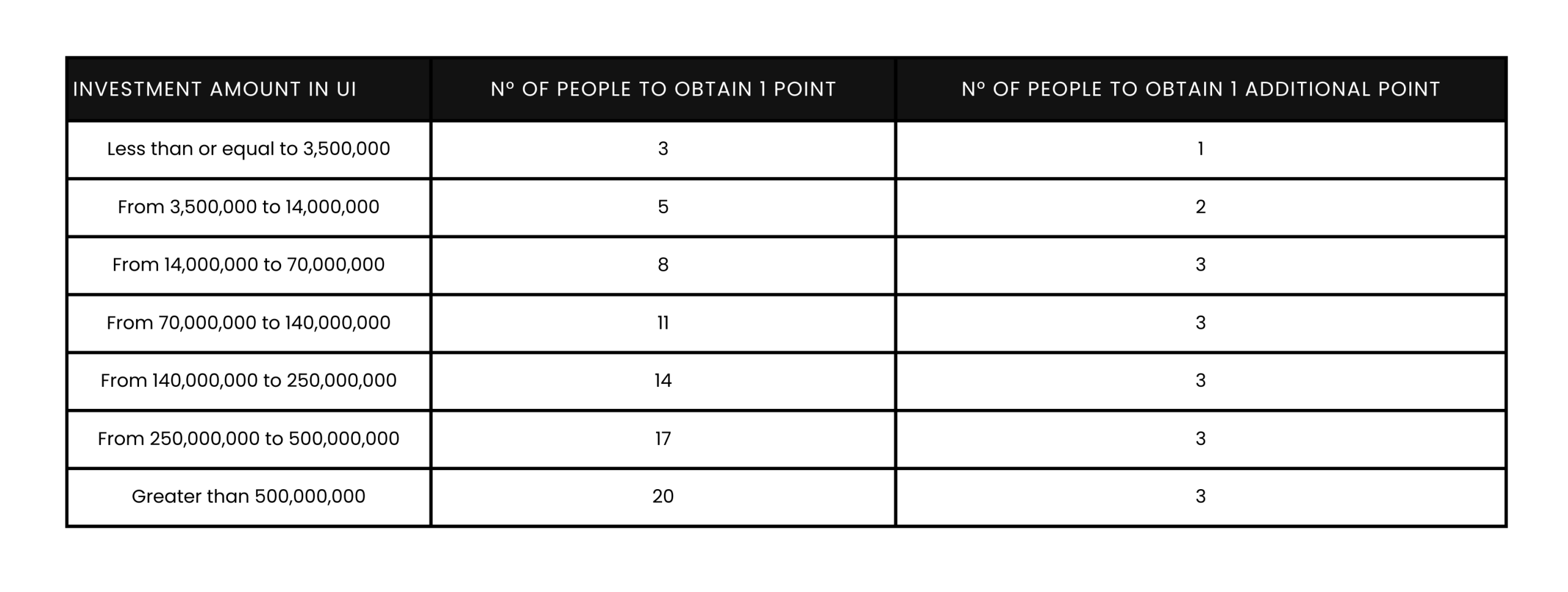 As an additional benefit, micro and small companies, with investments of up to 3,500,000 (three million five hundred thousand) Indexed Units (UI), are granted an additional 10% (ten percent) IRAE benefit. Likewise, users of industrial parks and scientific-technological parks are granted a 15% or 5% increase on the exempted IRAE amount.
