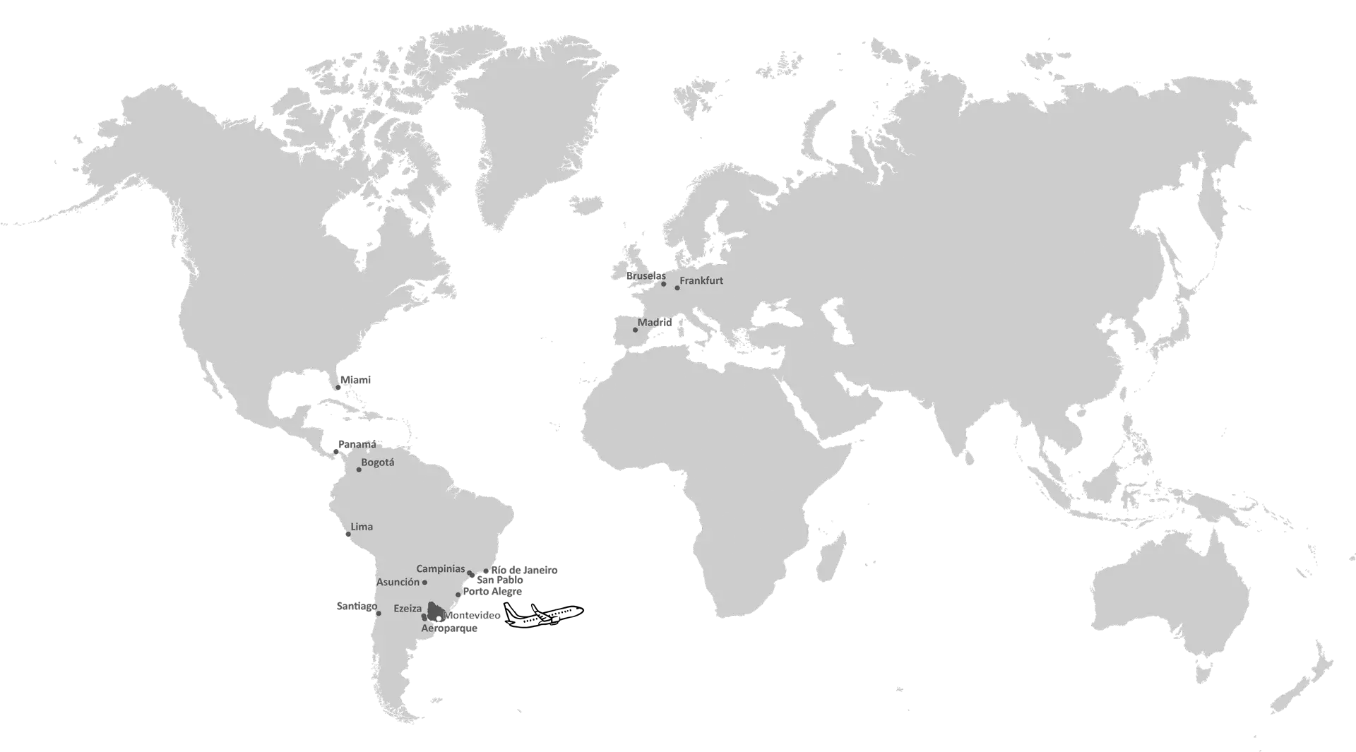 Uruguay maintains direct connection with Europe —primarily Madrid, Amsterdam and Frankfurt—, with the United States via Miami, and with the main destinations in South America, consolidating its role as a regional air platform.