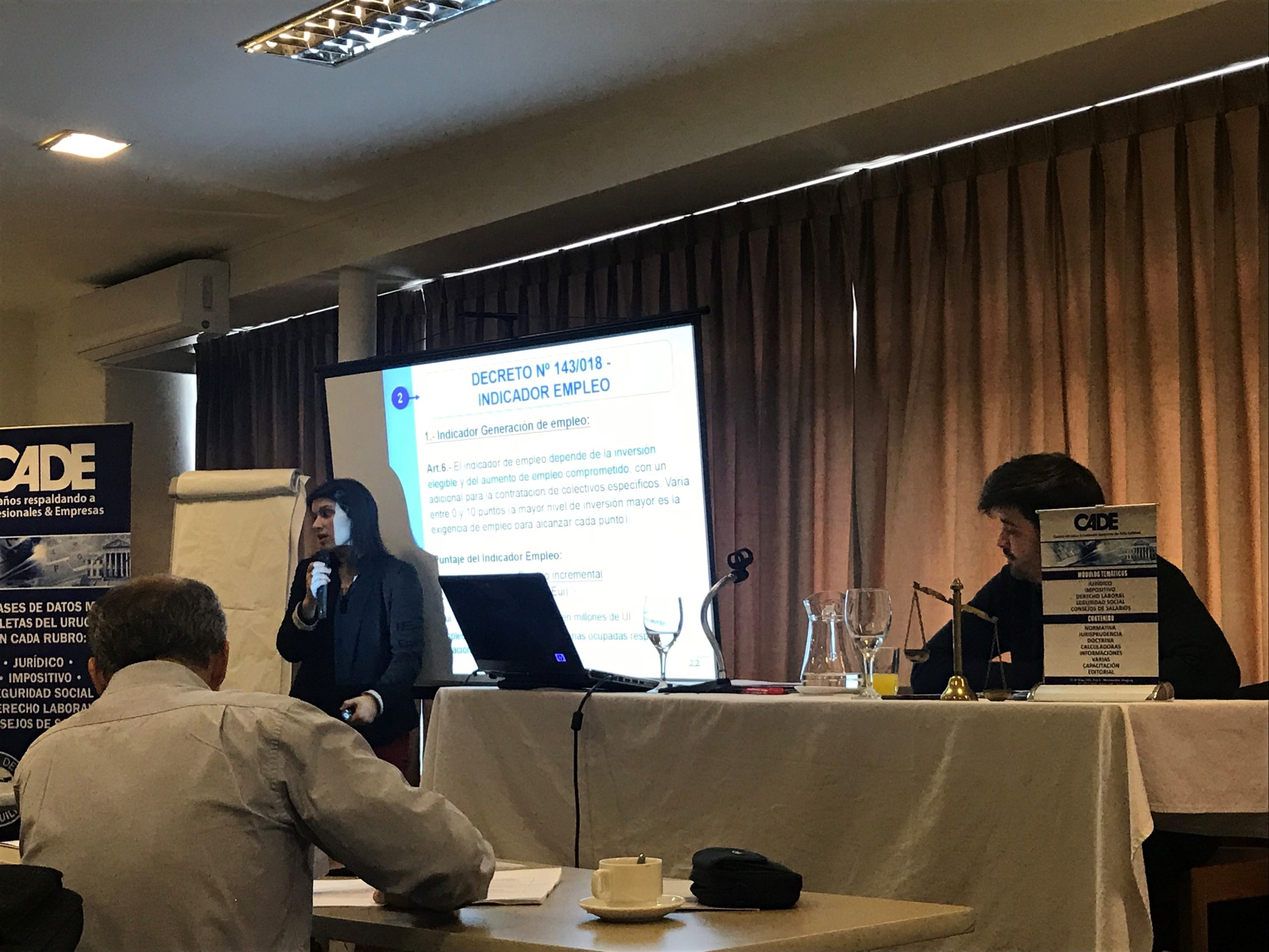 El pasado lunes 29 y miércoles 31 de octubre de 2018, INALOG participó en un curso del nuevo régimen de promoción de inversiones, organizado por CADE. El mismo fue dictado por lo Cres. Pablo Cabrera y Johanna Sonderegger, quienes disertaron sobre el Decreto 143/018 del 22/05/2018, y específicamente sobre su vigencia, las modificaciones más significativas respecto al régimen anterior, beneficiarios, inversiones elegibles y computables, matriz de objetivos e indicadores, beneficios otorgados, control y seguimiento, incumplimientos y pérdida de beneficios e incentivos adicionales para determinadas empresas.