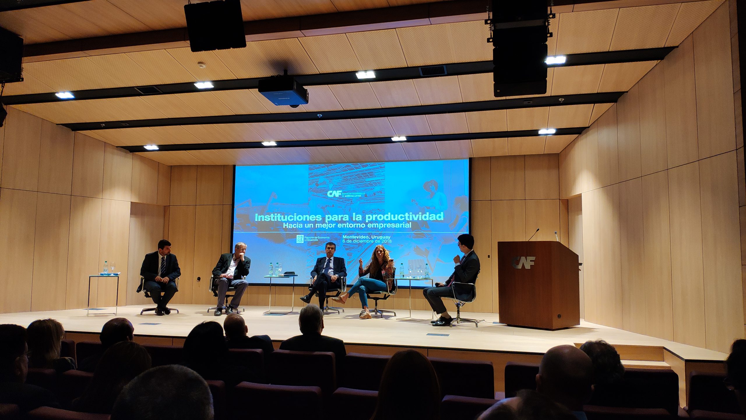 Luego de la presentación, se realizó un panel interactivo en el cual se discutieron los principales ejes temáticos identificados en el reporte: la competencia, el acceso a insumos y cooperación, el empleo y el financiamiento. En el mismo, hicieron uso de la palabra Néstor Gandelman (Profesor en Universidad ORT Uruguay), Álvaro García (Director de la Oficina de Planeamiento y Presupuesto), Sebastián Pérez (Asesor Económico de la Cámara de Industrias del Uruguay) y Alejandra Picco (Asesora Económica en el Instituto Cuesta Duarte, PIT – CNT).