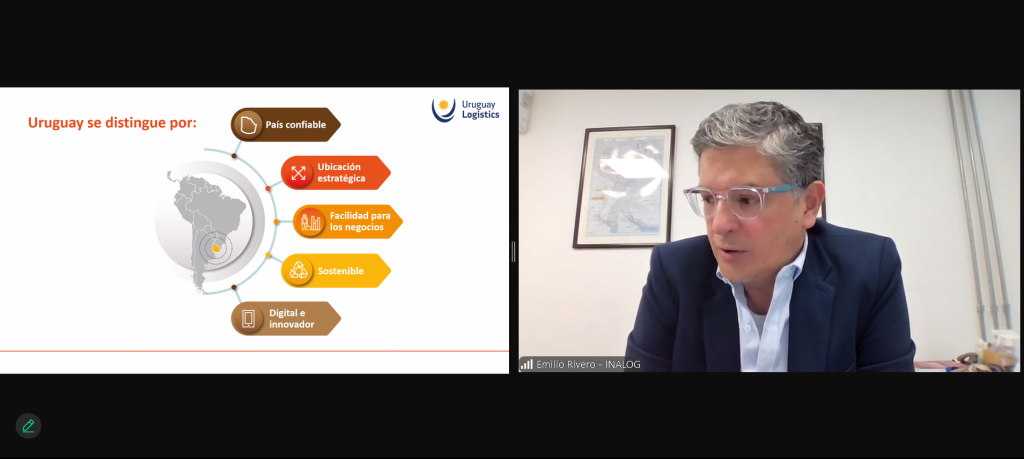 Por su parte, el gerente general del INALOG, Emilio Rivero, presentó una visión general del sistema logístico uruguayo, destacando su marco normativo estable y transparente y los beneficios de las diferentes plataformas logísticas del país, como zonas francas, depósitos aduaneros y puerto y aeropuerto libre.