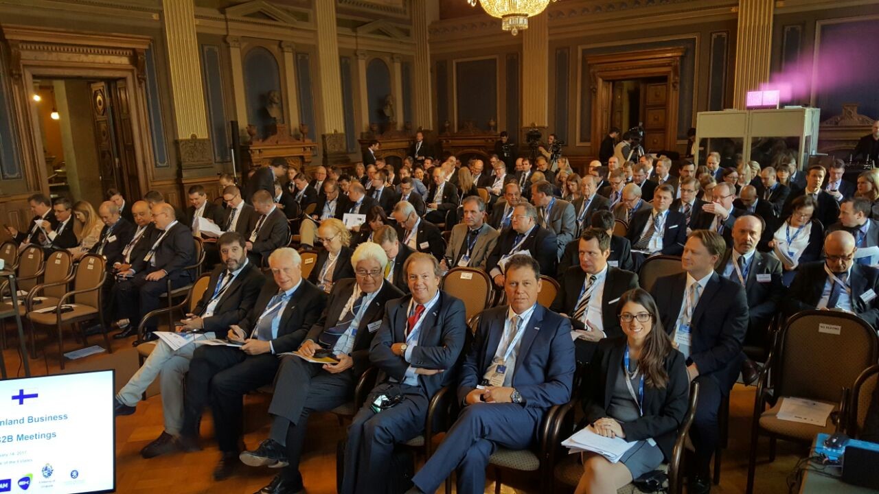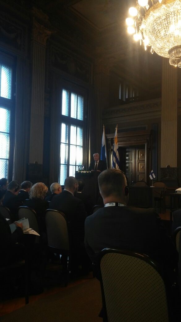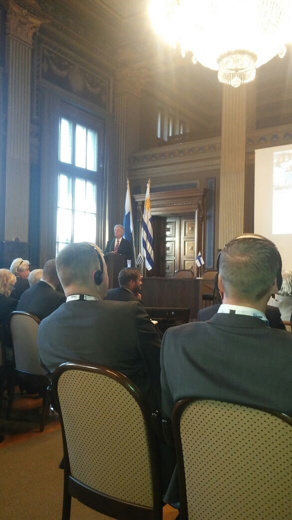 En la tarde del martes 14, se asistió al “Foro de negocios Uruguay-Finlandia” en House of State. La apertura de dicho evento estuvo a cargo del Sr. Presidente de la República, Dr. Tabaré Vázquez. También participaron del foro el Cr. Danilo Astori, Ministro de Economía, quien explicó las Perspectivas Económicas de Uruguay (planes y prioridades), el Sr. Victor Rossi, Ministro de Transporte y Obras Públicas, quien expuso sobre el Programa de Inversiones en Infraestructura de Uruguay y autoridades nacionales finlandesas.