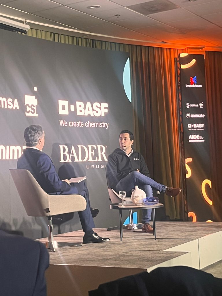 Diego Gamba (CEO Mercado Libre), quien presentó avances en logística de última milla, digitalización y sostenibilidad, destacando la evolución del modelo operativo en Uruguay.