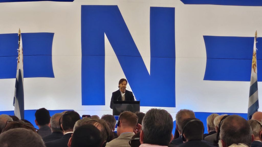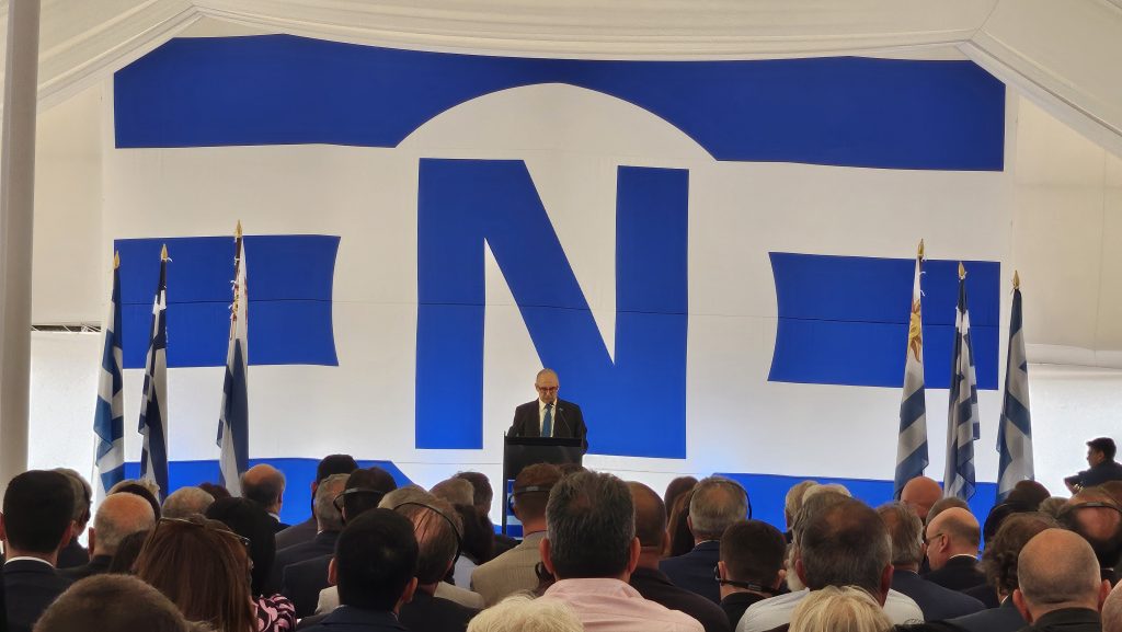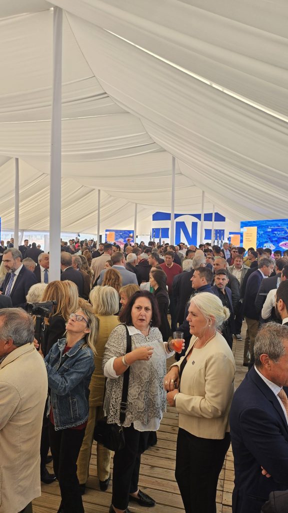 El presidente de Uruguay, Luis Lacalle Pou; Angeliki Frangou, directora general de Navios Logistics y George Achniotis, Chief Executive Officer; junto a representantes del gobierno nacional y departamental y de la dirección ejecutiva del grupo estuvieron presente.