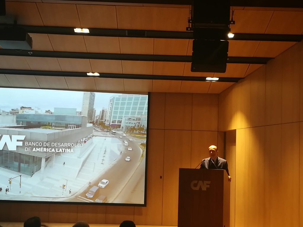 El día 5 de diciembre, el INALOG a través de su presidente Cra. Ana Rey, participó de la inauguración del Banco de Desarrollo de América Latina, que estuvo encabezada por el Presidente de la República, Dr. Tabaré Vázquez. Hicieron uso de la palabra el presidente de CAF, Luis Carranza, el intendente Daniel Martínez y por el Poder Ejecutivo, el director de la OPP, Álvaro García. También participaron varios ministros, entre ellos el de Transporte y Obras Públicas, Victor Rossi. La ceremonia estuvo acompañada por la música de la Sinfónica Juvenil del Sodre.