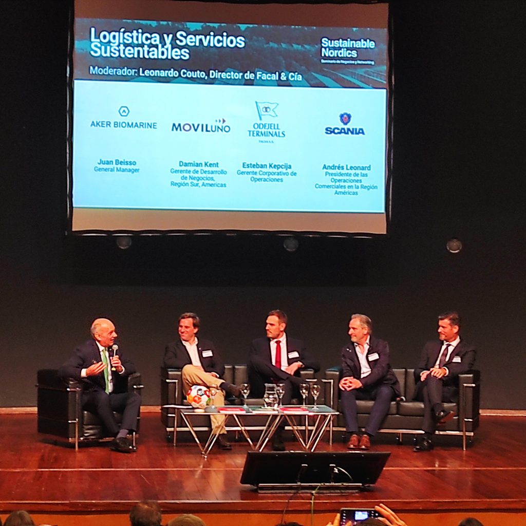El segundo panel de la mañana abordó la temática “Logística y Servicios Sustentables” y fue moderado por Leonardo Couto, Director de Facal & Cia. En el mismo participaron representantes de las empresas AKER BIOMARINE, Moviluno, ODFJELL TERMINALS TAGSA y SCANIA, en donde expusieron las acciones que llevan adelante en materia de sustentabilidad y detallaron cuáles son sus objetivos futuros en la búsqueda de minimizar el impacto ambiental de sus actividades.