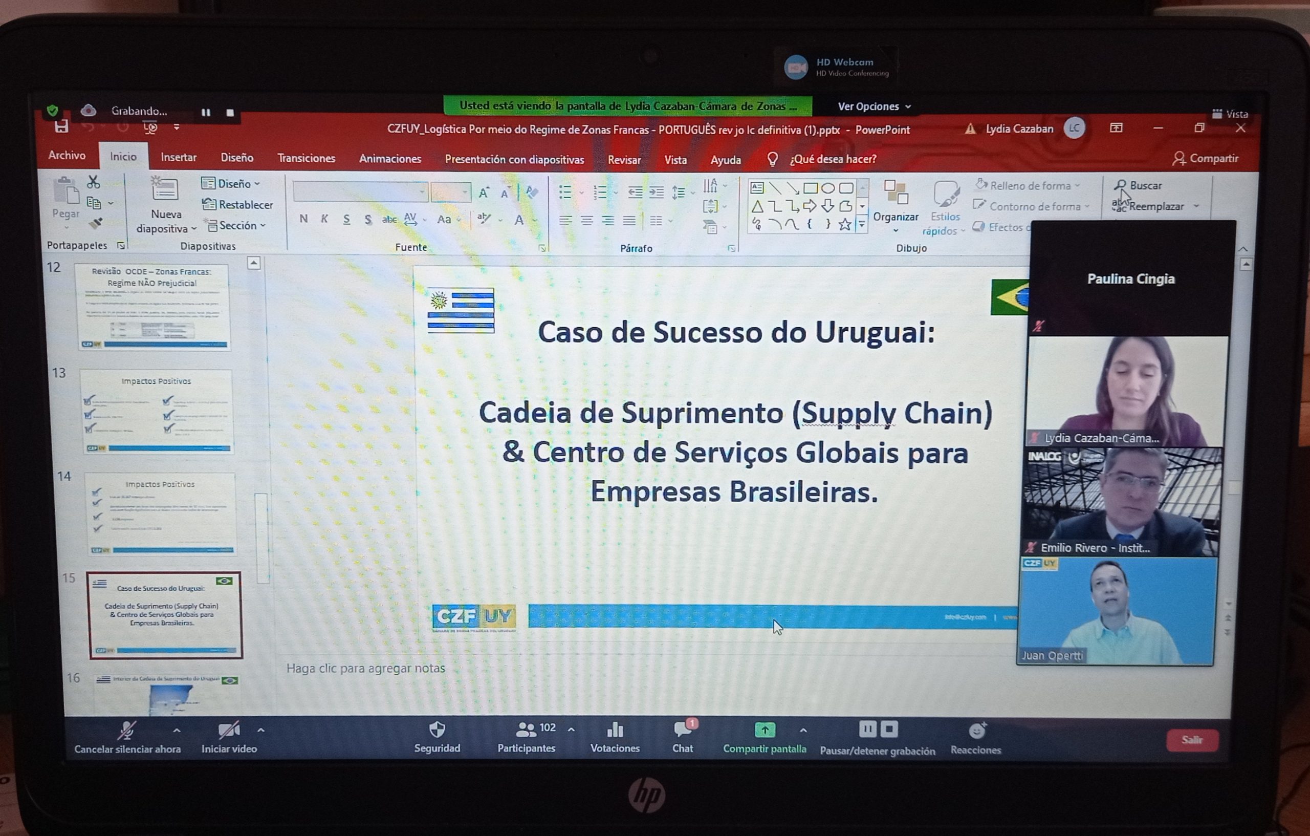 Por parte de la Cámara de Zonas Francas de Uruguay y la Logística por medio de régimen de Zonas Francas, expusieron el Ing. Juan Opertti, encargado de relaciones institucionales y la Dra. Lydia Cazaban, gerente general de la Cámara de Zonas Francas de Uruguay. Los mencionados informaron a los presentes acerca del régimen de zonas francas, su objetivo de promoción, innovación y facilitación, y las ventajas normativas que ofrece a la operativa. Adicionalmente profundizaron en cómo usar las ZZFF y el modelo de seguridad y velocidad que ofrecen junto con los estándares internacionales de calidad y las plataformas especializadas.