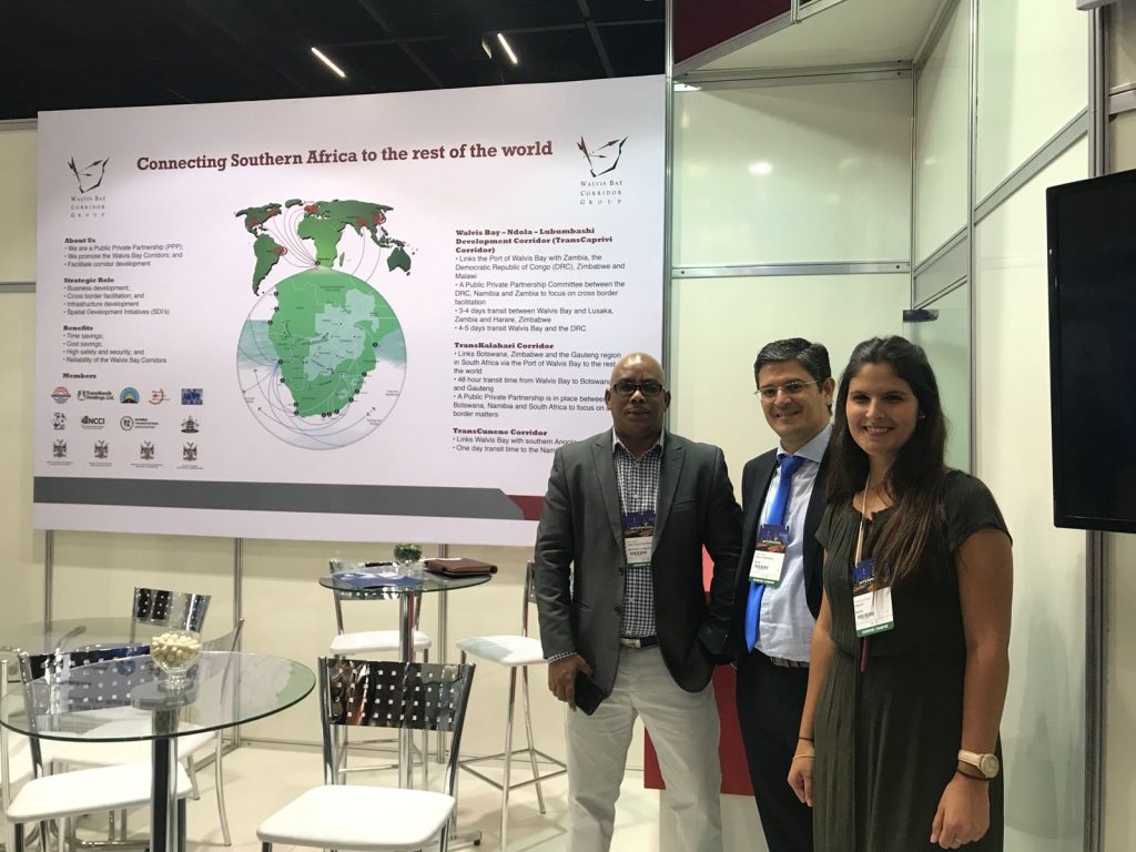 En el día de hoy, la delegación del INALOG visitó el stand de Walvis Bay Corridor Group, que es una asociación público-privada africana, homologa al INALOG, establecida para promover la utilización de una red de corredores de transporte que comprende principalmente el Puerto de Walvis Bay, el Corredor Trans-Kalahari, el Corredor Trans-Caprivi, el Corredor Trans-Cunene y el Corredor Trans-Oranje. Su representante, Clave Smith, también estuvo presente en el lanzamiento internacional de la marca Uruguay Logístico en el día de ayer.