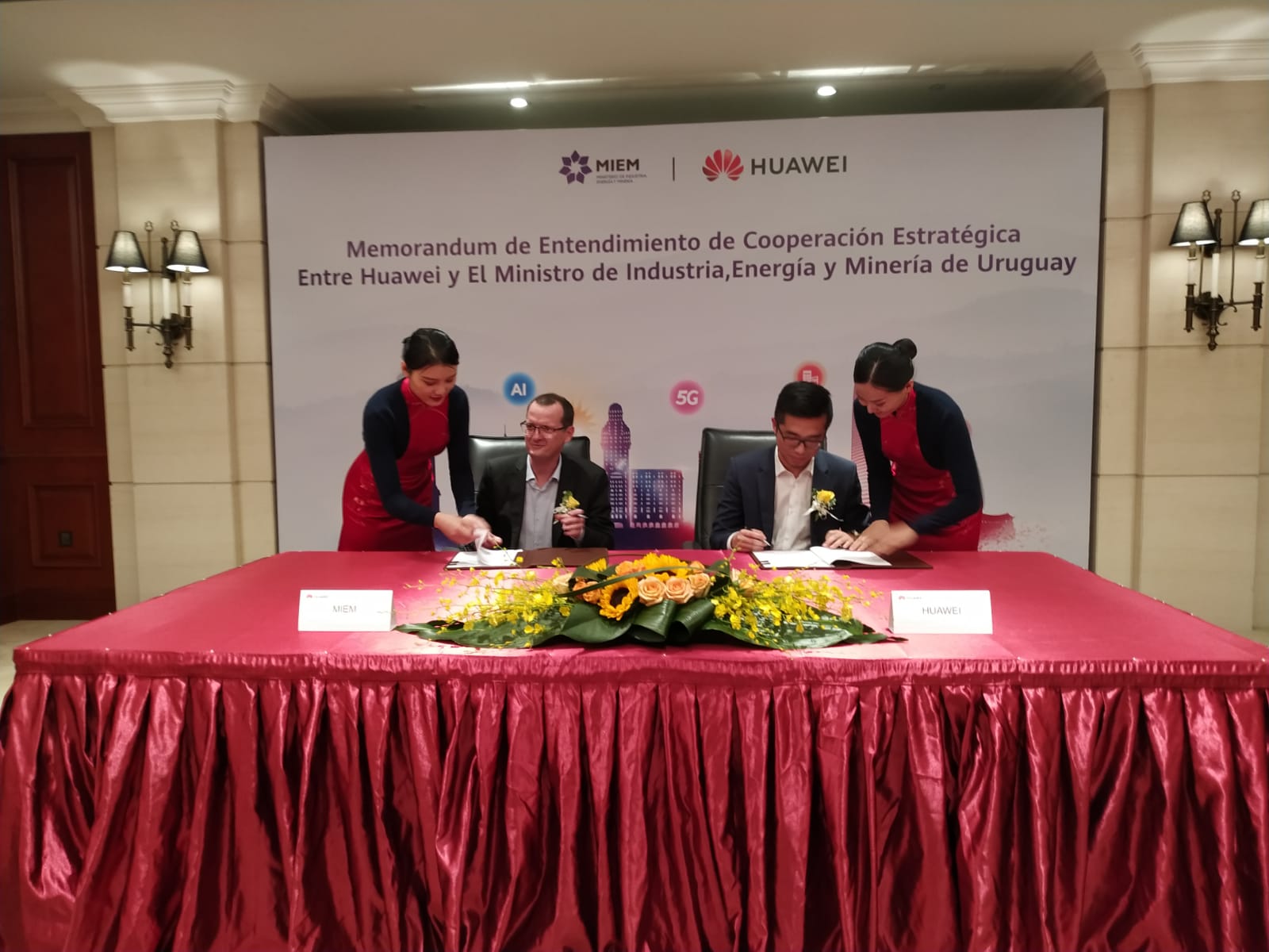 En la tarde de miércoles 21 de agosto, la delegación uruguaya encabezada por el ministro de Industria, Energía y Minería, Dr. Ing. Guillermo Moncecchi se reunió con la empresa Huawei. En la misma se realizó la Ceremonia de firma de MOU de Cooperación entre el MIEM y la empresa Huawei.