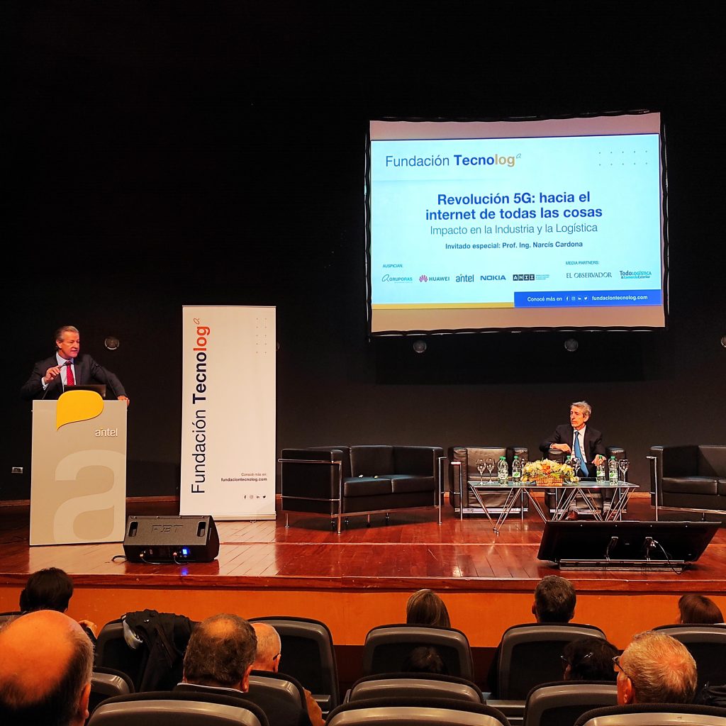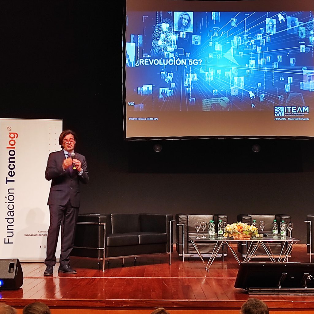 Luego disertó el Prof. Ing. Narcís Cardona, Director del iTEAM Research Institute, Universitat Politécnica de Valencia. La ponencia se enfocó en los aspectos claves de la nueva tecnología 5G y el impacto de esta en los nuevos sectores de logística, robótica, industria, etc. y como se ha aplicado en Valencia. A su vez, explico que la 5G pretende que “todo lo que puede conectarse, se conecte”. Es decir, misma red para conectar diferentes dispositivos con distintos requisitos. Esta nueva red es ultra flexible ya que permite adaptarse a los dispositivos, evolucionando frente a las anteriores. Es la red de nueva generación conectada, pero con máquinas y comentó que esta tecnología “es más rápida que los sentidos humanos”. En efecto, la “revolución 5G” se desarrolla en el mundo de los dispositivos electrónicos, los sensores, las máquinas y vehículos, y no tanto en el de los teléfonos móviles personales. Este cambio de paradigma en la aplicación de las redes de telefonía móvil, que se orientan ahora hacia sectores industriales, va acompañado del estándar global 5G.