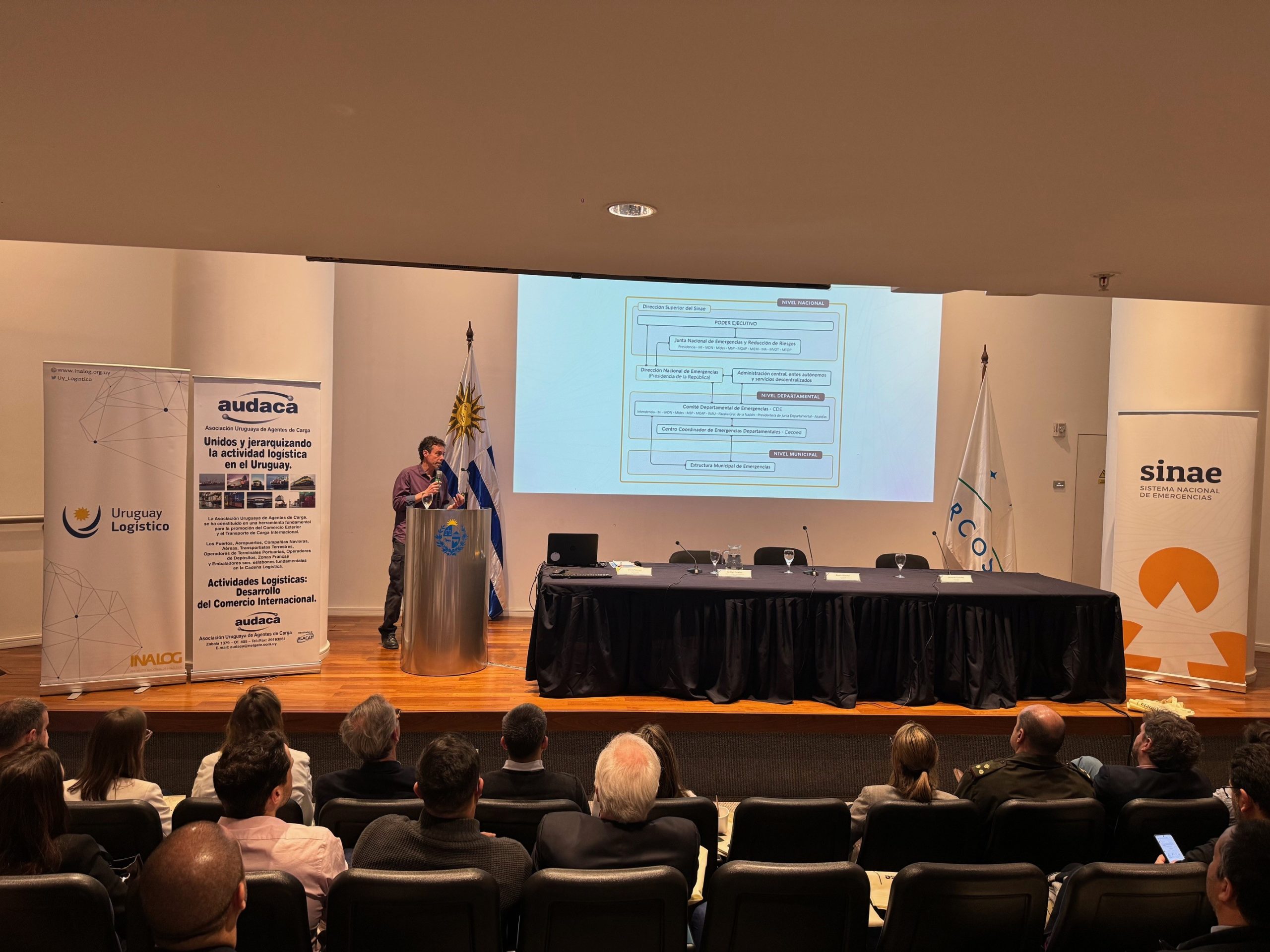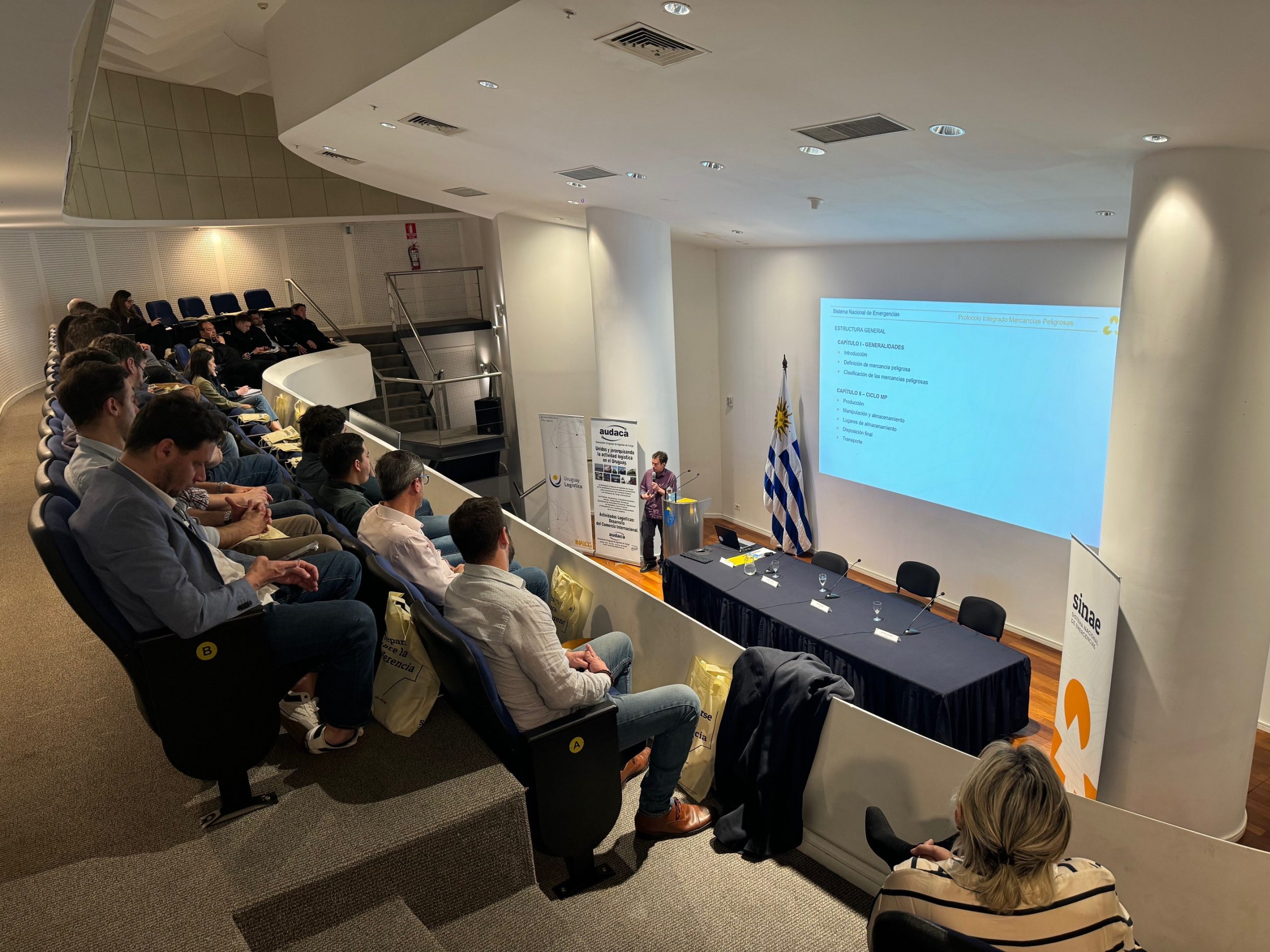 La actividad fue organizada por la Dirección Nacional de Emergencias del Sinae, en conjunto con el Instituto Nacional de Logística (INALOG) y la Asociación Uruguaya de Agentes de Carga (AUDACA).