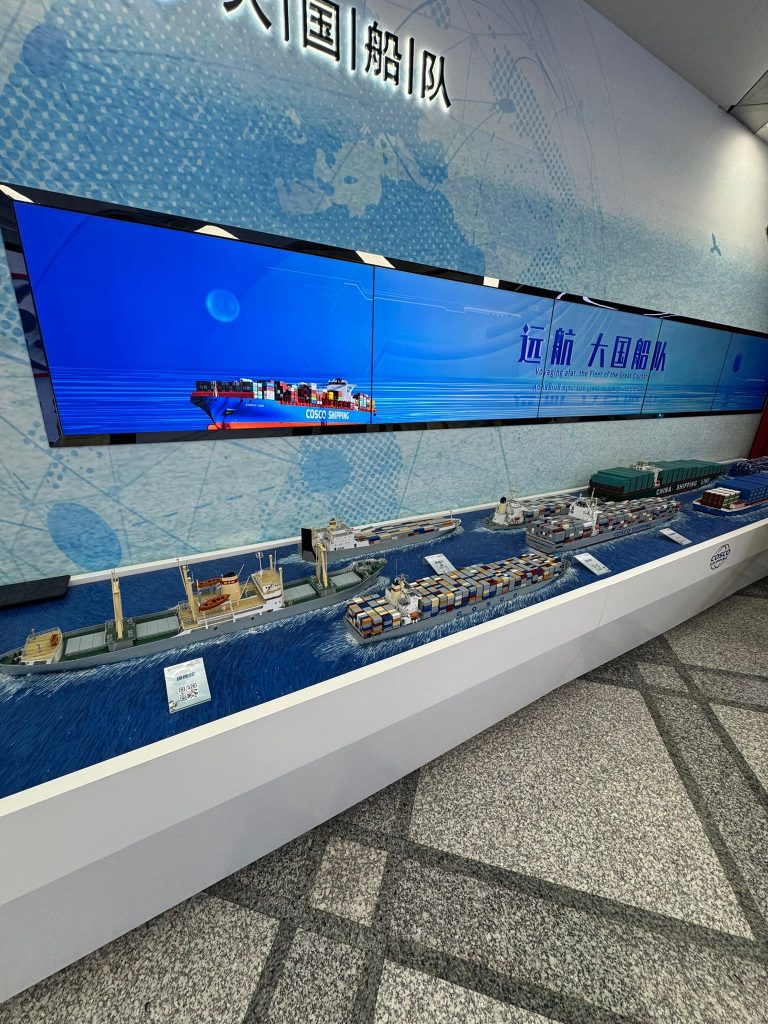 • COSCO SHIPPING CO., una de las principales navieras del mundo, recibió a la delegación en su sede central. La visita incluyó un recorrido por su historia institucional, desde su fundación en 1961 hasta su consolidación global tras su fusión en 2016 con CHINA SHIPPING GROUP.