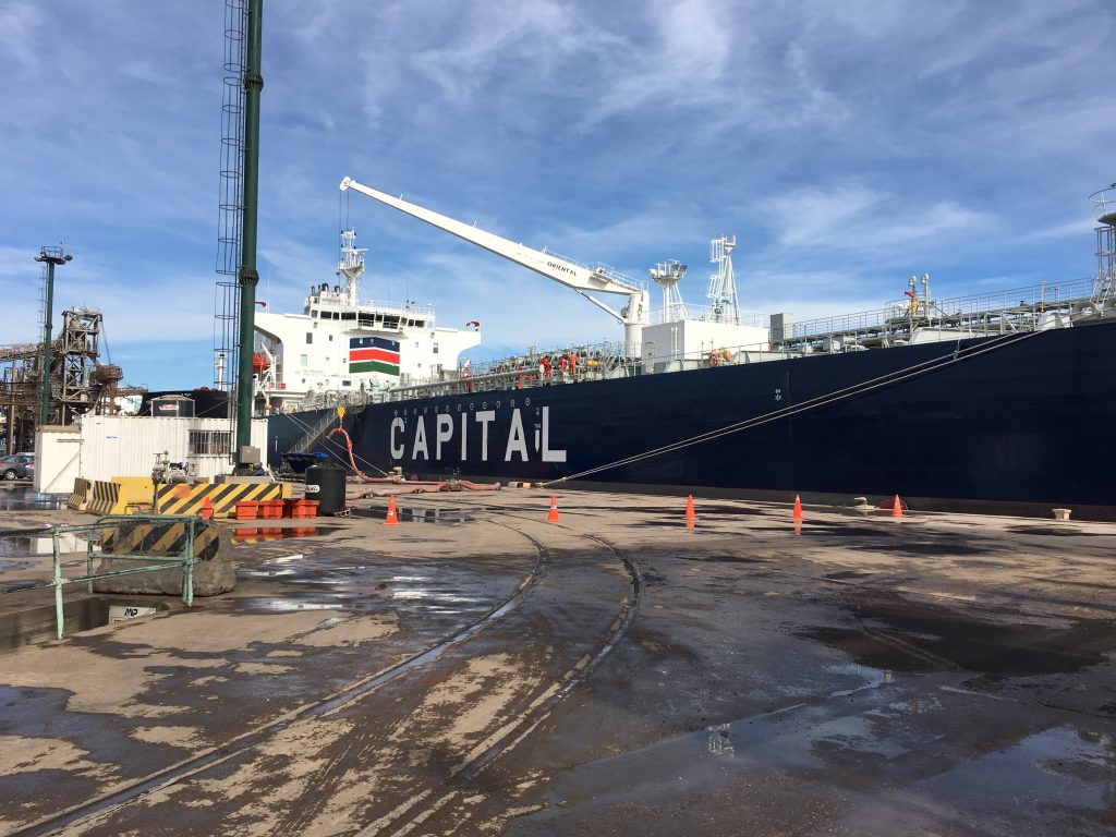 Luego fueron a Terminales de Líquidos del Uruguay (TLU), donde Mario Silva los recibió para contarles cómo funciona la operativa en la terminal de líquidos de Shandy y pudieran visualizar en ese momento la descarga de un buque.
