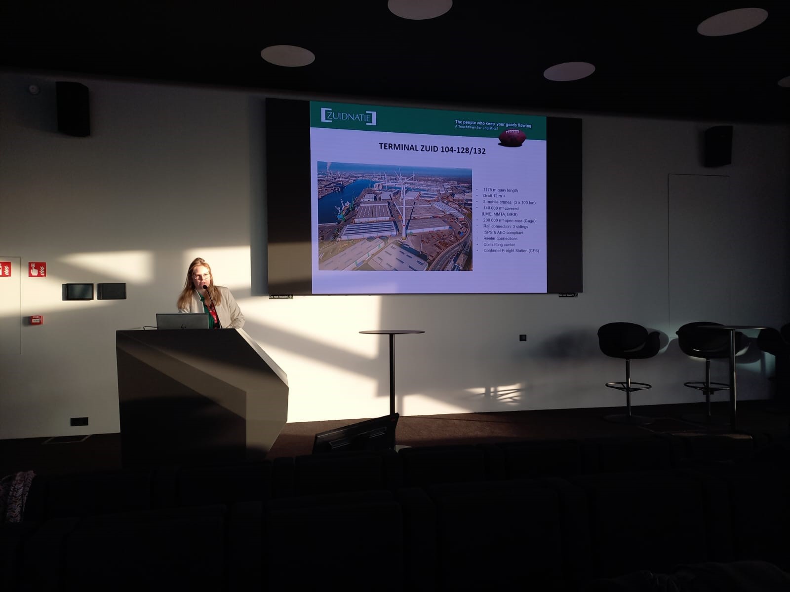 Por otra parte, la empresa Zuidnatie habló sobre sus terminales en el puerto de Amberes, exponiendo brevemente sobre los diferentes servicios que ofrecen: estiba, depósito, manejo de carga contenerizada, transporte, logística y valor agregado, destacándose que cuentan con su propio departamento de aduanas dentro de la terminal.