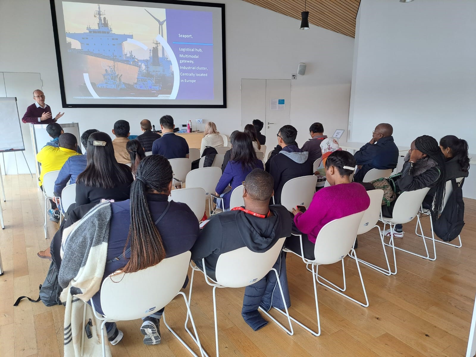 Durante los últimos días del seminario se realizaron distintas visitas como a Combinant, una terminal con la particularidad de ser la única que es dueña de la tierra dentro del puerto. Se trata de una terminal intermodal, que combina el transporte carretero con el ferroviario, sin involucrar operativa marítima. La terminal pertenece a una sociedad compuesta por BASF (compañía química), Hupac (operador de trenes) y Huyer (operador de tanques).